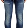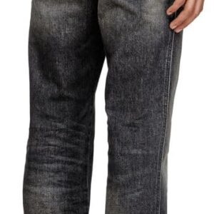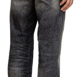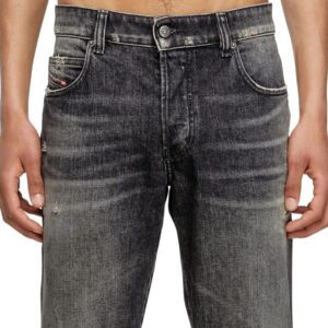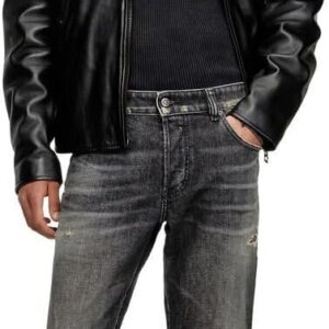 - Crafted from comfort denim, this black style nods to the brand’s DNA destroyed aesthetic – note the ripped and repaired abrasions on the left leg.