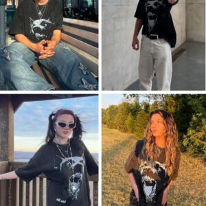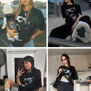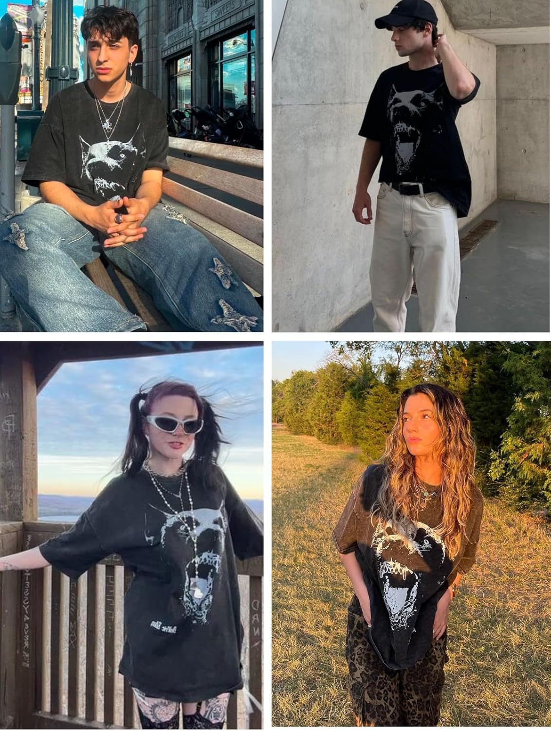 Aelfric Eden Oversized Tees Graphic Dog Print Tshirt Washed Cotton Short Sleeve Summer Streetwear Vintage Unisex Tops