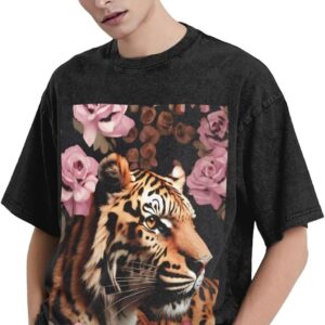 Animal Tiger Leopard Print Print Men’s Oversized Cotton Summer T-Shirts Vintage Tee Loose Fit Short Sleeve Casual Tshirts