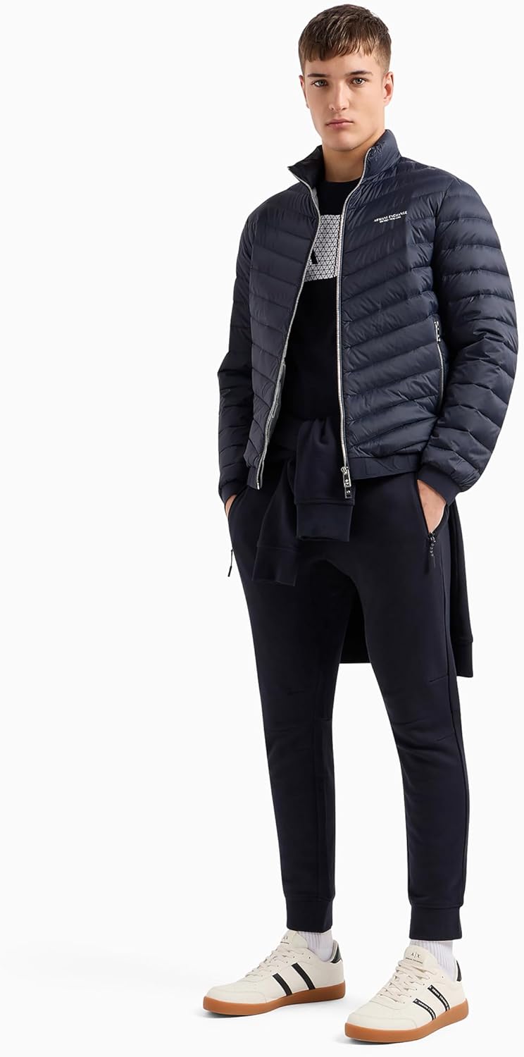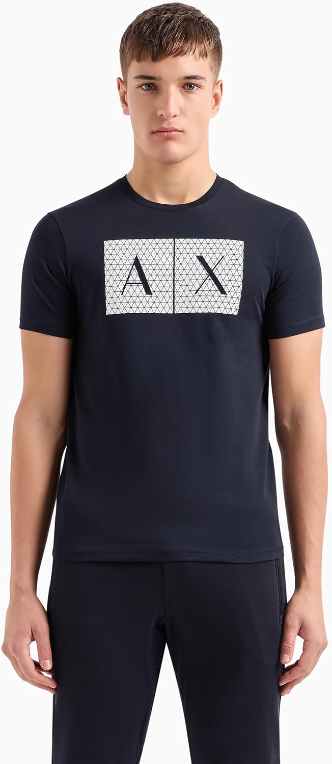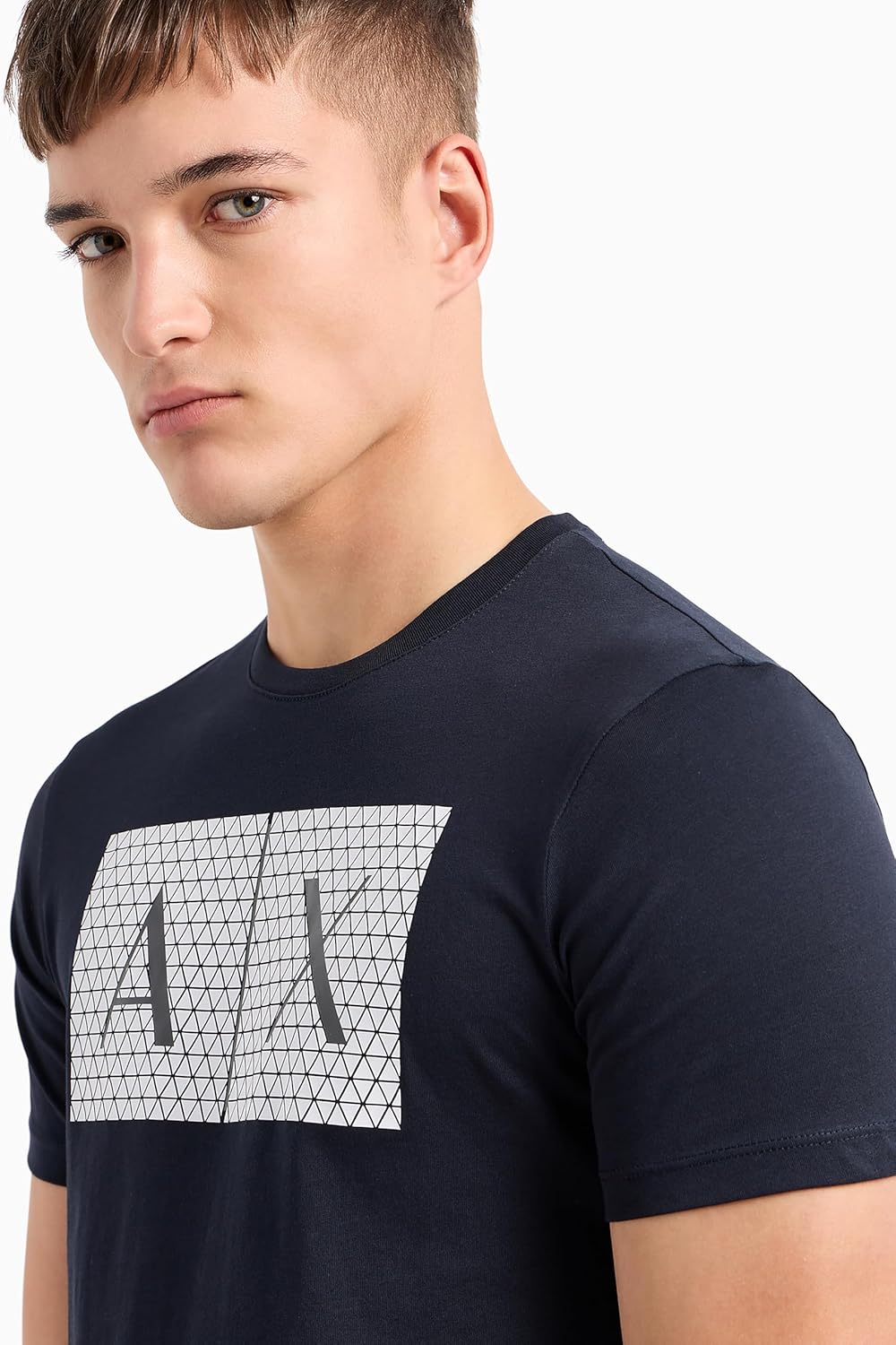 Classic cotton T-Shirt with a crew neck, slim fit, and short sleeves. This shirt is made of 100% cotton and has the AX logo surronded by quilted print.