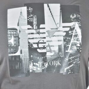 Emporio Armani City Prints T-Shirt in Grey NYC. Slim fitting t-shirt by Emporio Armani. Large bold square Emporio Armani city print design. Classic t-shirt styling with a crew neck and short sleeves. Perfect combined with jeans. Slim fit Crew neck Short sleeve Large city print 100% Cotton Product Code: 3Z1T75 1JPZZ