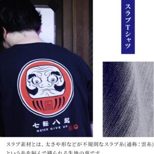 Japanese Design T-Shirts (Discharge Print Series/NANAKOROBIYAOKI Daruma – Navy XL) 100% Cotton/Streetwear Oversized Unisex Graphic Tee T Shirt Men Women