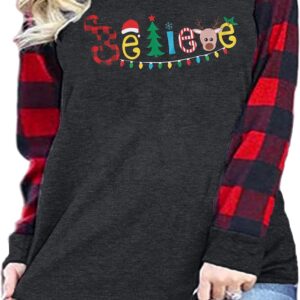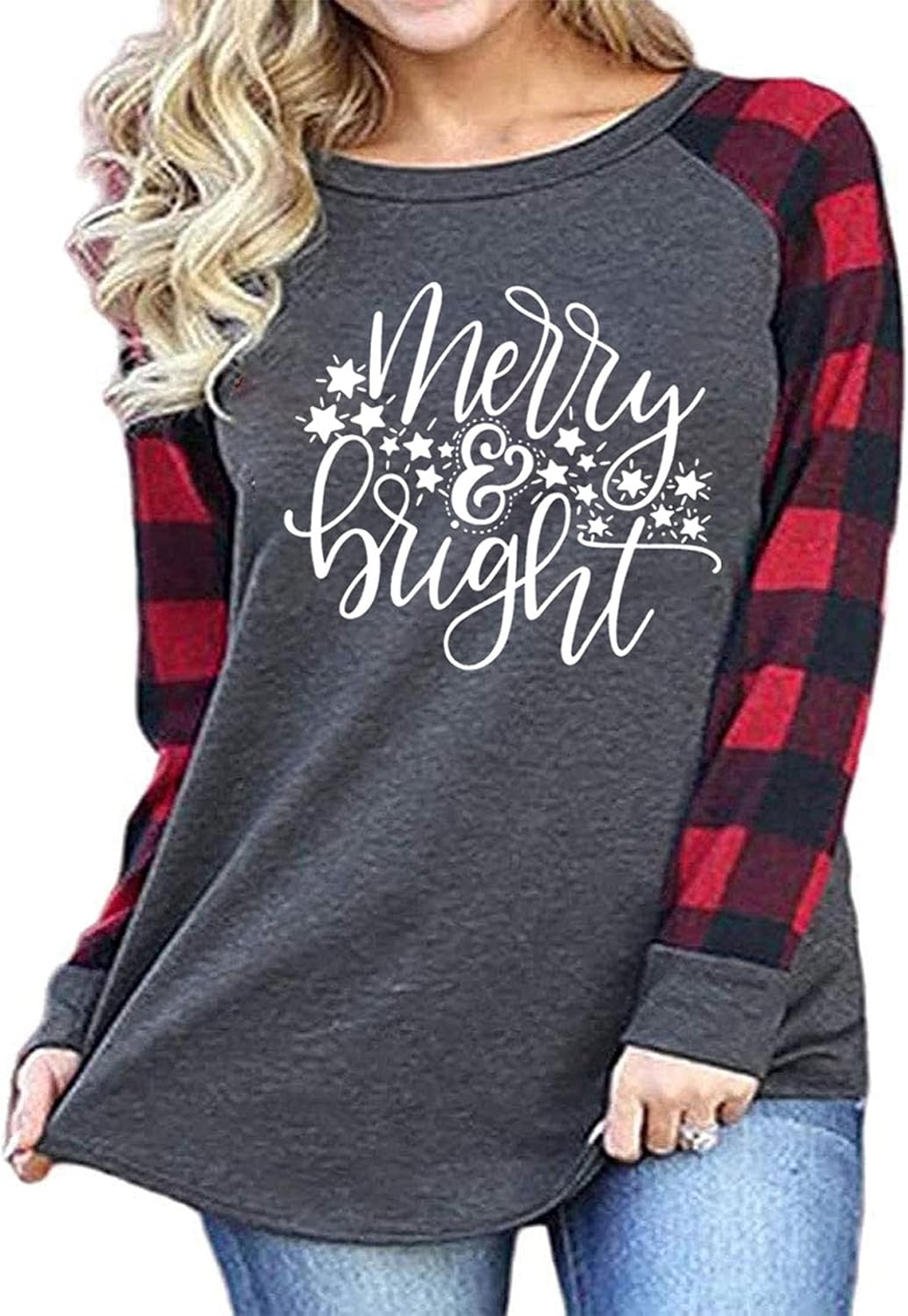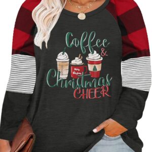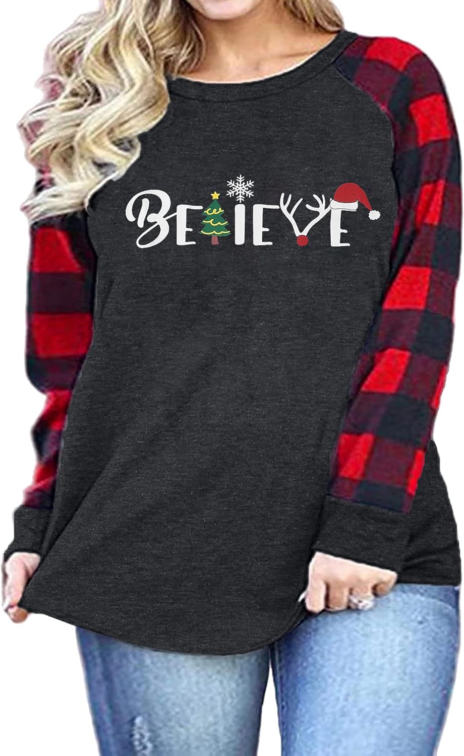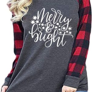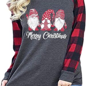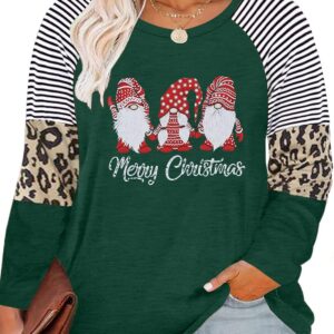 Plus Size Merry Christmas Baseball T-Shirt Women 3\/4 Sleeve Holiday Splicing Tee Tops