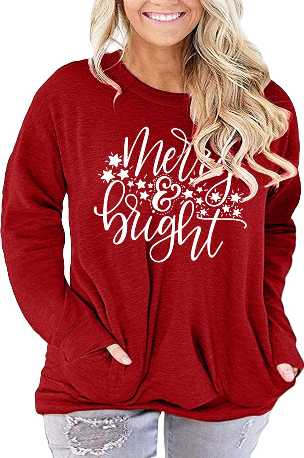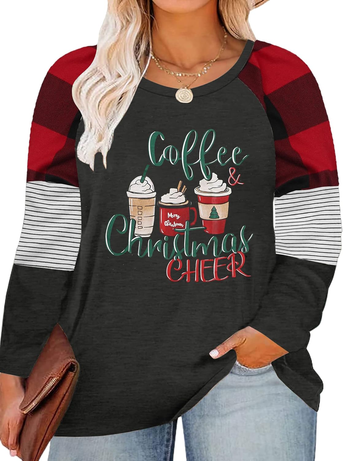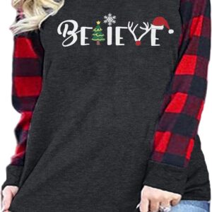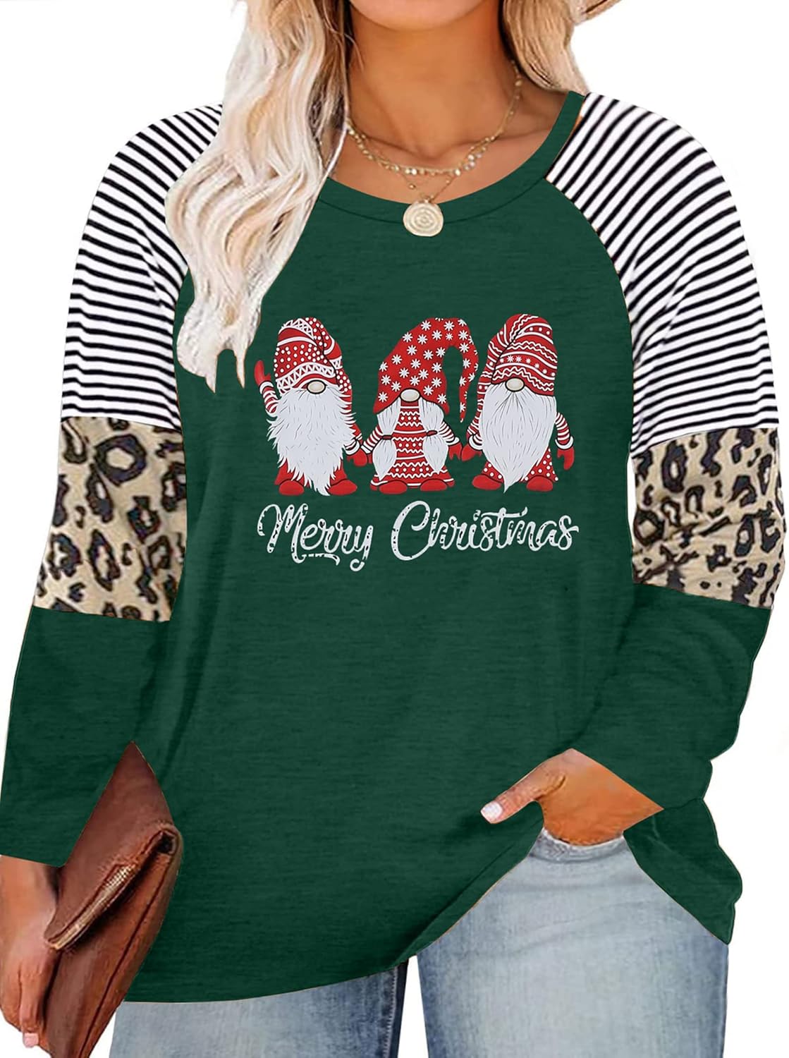 Plus Size Merry Christmas Baseball T-Shirt Women 3\/4 Sleeve Holiday Splicing Tee Tops