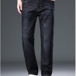 Spring and Autumn Jeans Loose Straight Leg Pants Versatile Elastic Pants(32) Blue