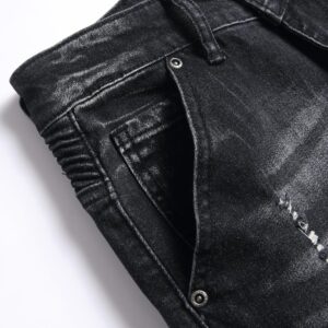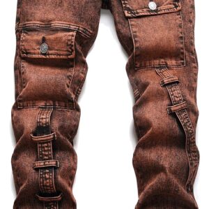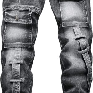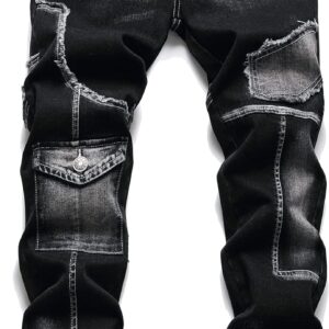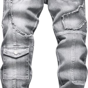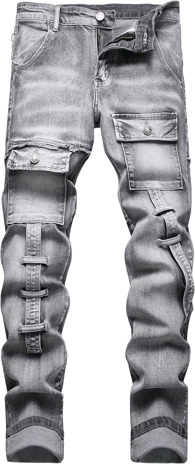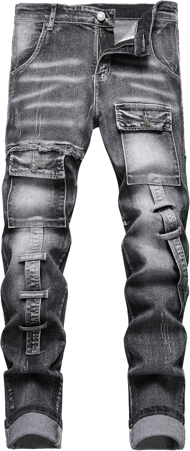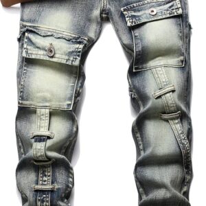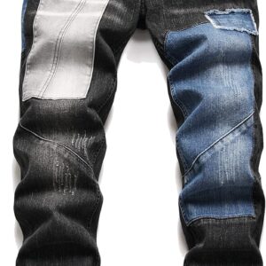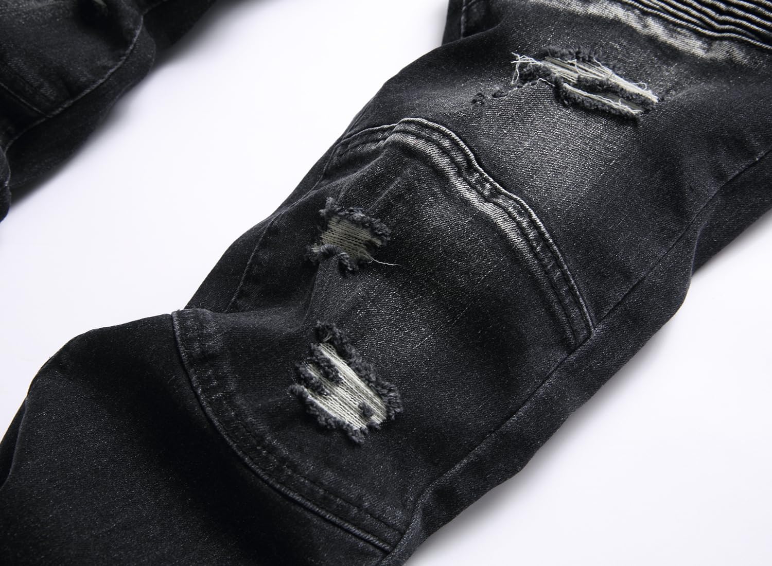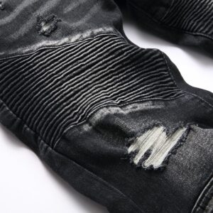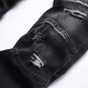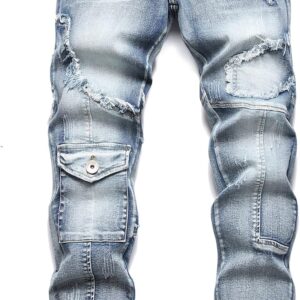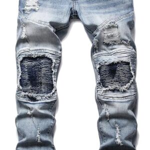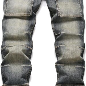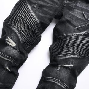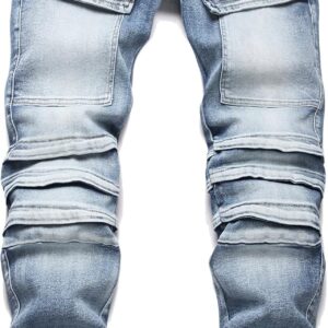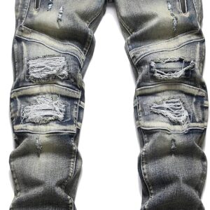 XIMXIMMTIAN Men’s Biker Moto Washed Distressed Slim Fit Straight Jeans Denim