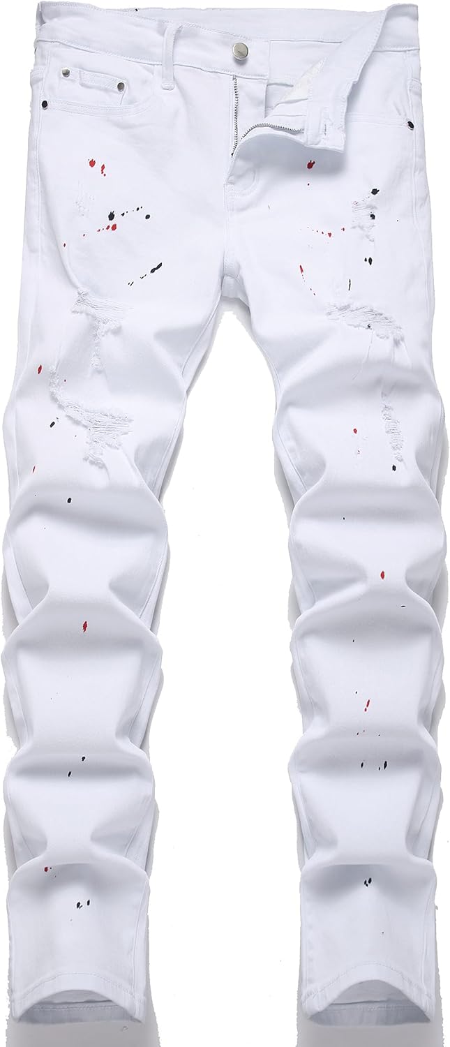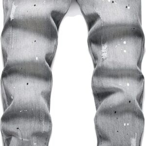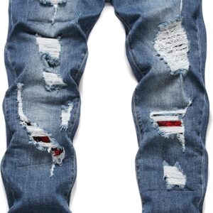 XIMXIMMTIAN Mens Slim Fit Jeans Stretch Ripped Biker Jeans for Men Fashion Straight Comfort Flex Waist Casual Denim Pants